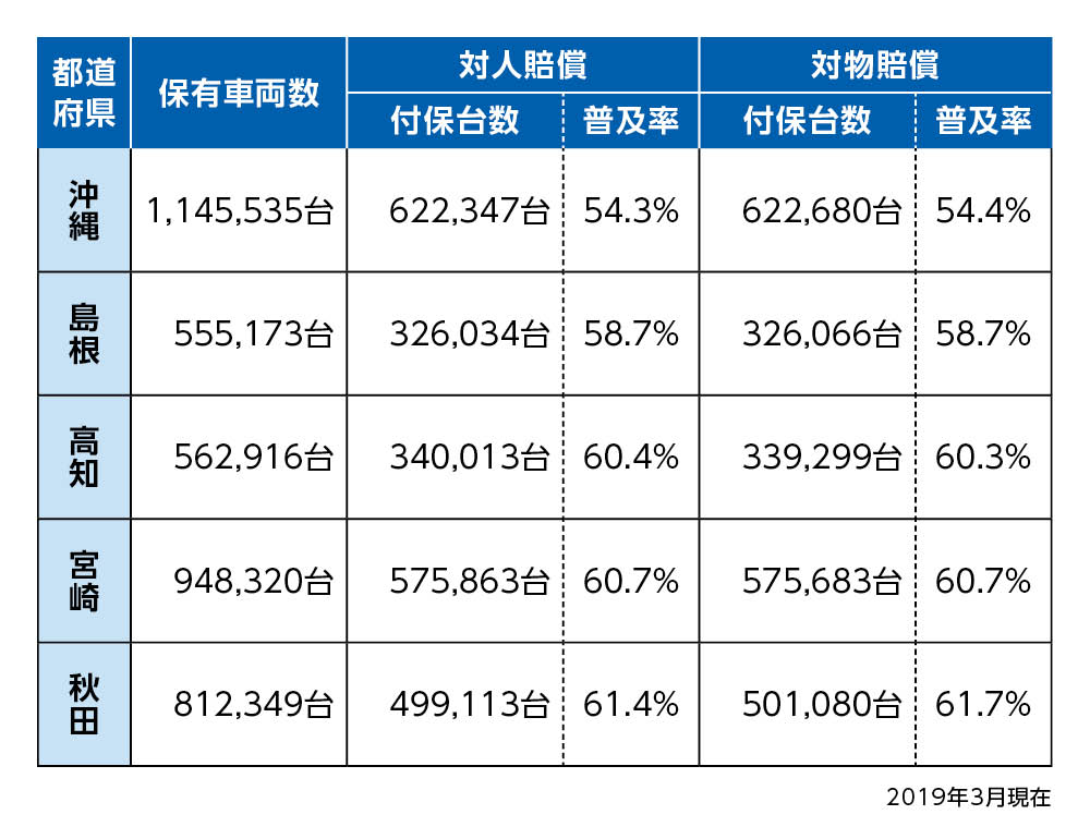 理由については様々に考察できますが、一次産業が発展している地域であれば農作業用の軽トラックなどが多く、それらの車は任意保険に入らないというケースもあるでしょう。また、沖縄県で観光客が移動するにはレンタカーが必須であり、膨大な台数となっていますが、レンタカーは都度利用者が任意保険に加入する仕組みです。