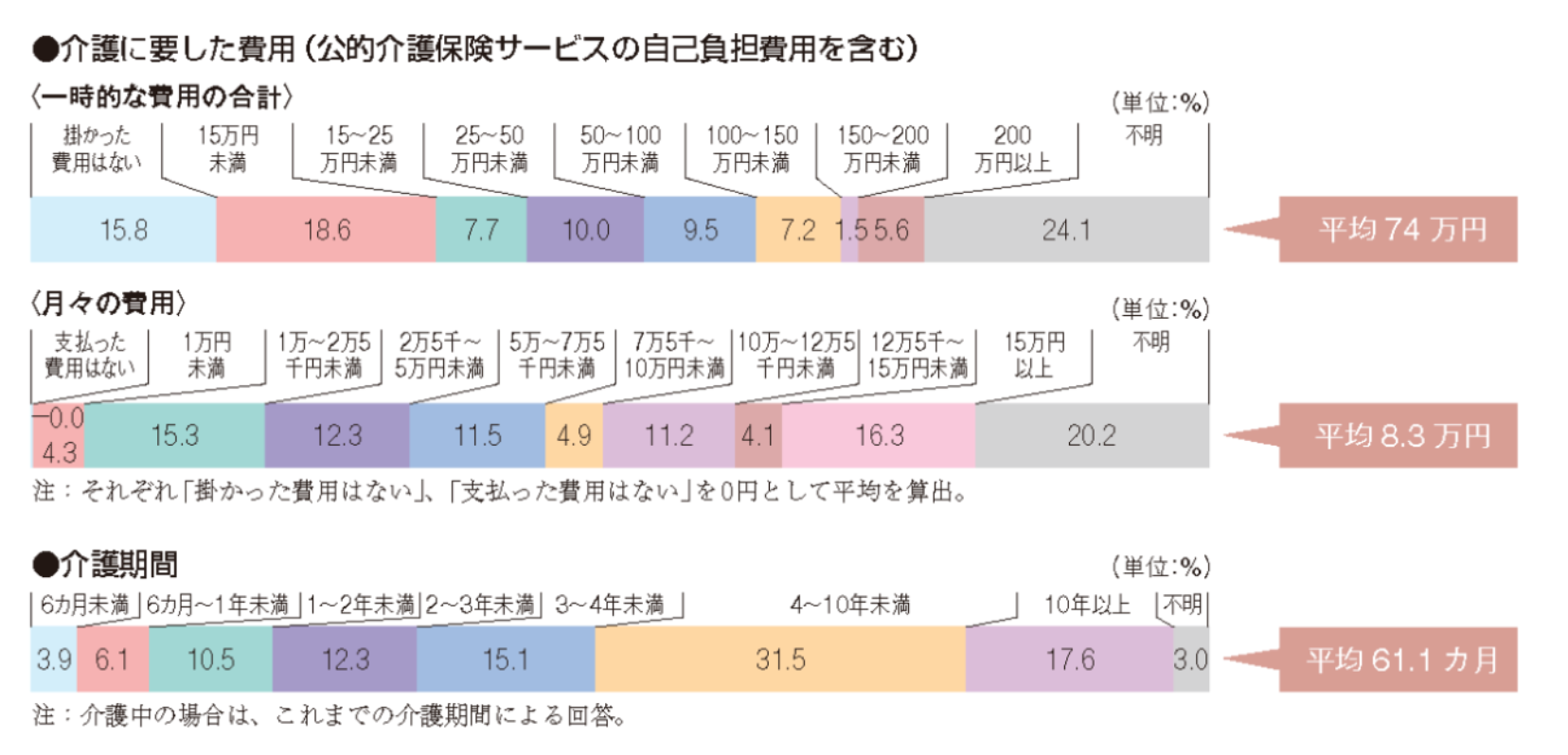 • 介護にかかる費用と介護の必要とされる期間をデータから確認する。