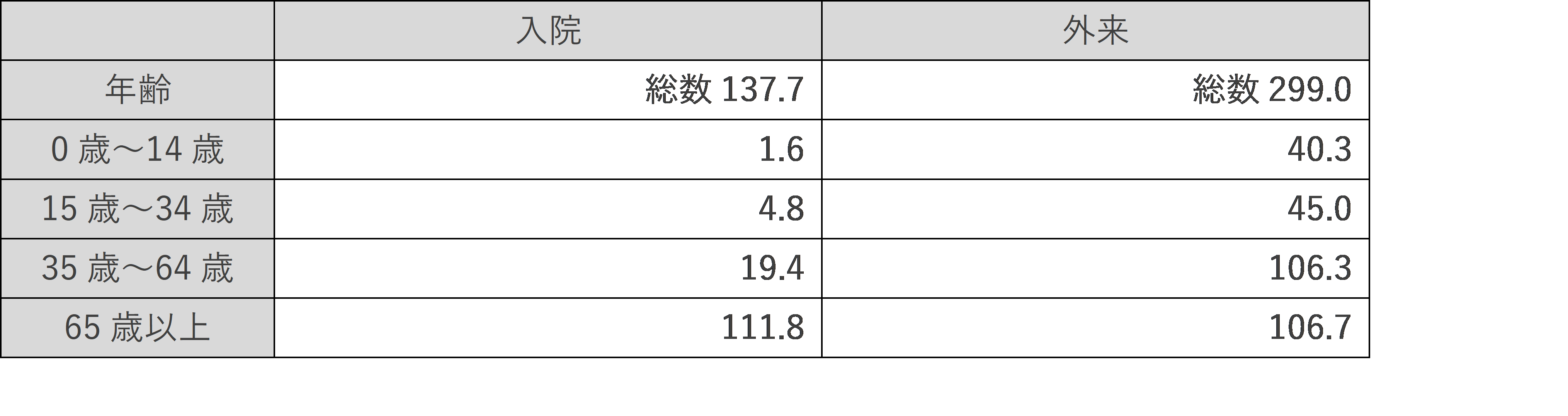 外来の推計患者数は、高齢者の方が多いと思われがちですが、35歳~64歳の推計患者数と大きな差はないことがわかります。